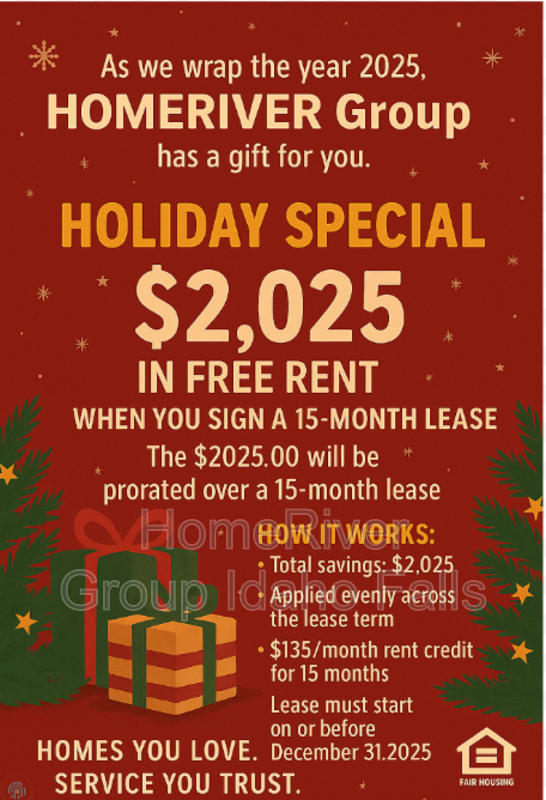 $2,025 in Free Rent Prorated over a 15-month lease term with a move-in on or before Dec. 31, 2025.