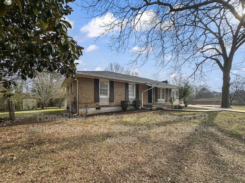 This well-maintained 3 bedroom, 1.5 bath home offering approximately 1,040 sq ft features a single-level layout with functional living space and a spacious yard. The exterior showcases a classic brick faade, covered front entry, extended driveway for off-street parking, and mature trees providing natural surroundings. The backyard offers a large open lawn and patio area suitable for outdoor use. Inside, the home includes a bright living room with durable wood-style flooring, neutral paint tones, and natural light from front-facing windows. The adjacent kitchen features white cabinetry, solid surface countertops, black appliances, and ample cabinet storage. The kitchen flows into the main living area, creating an efficient layout for everyday living. The primary bedroom includes convenient access to a half bath, while two additional bedrooms provide comfortable space with closet storage and easy access to the full hallway bathroom. Updated flooring continues throughout much of the home, enhancing the cohesive interior feel.