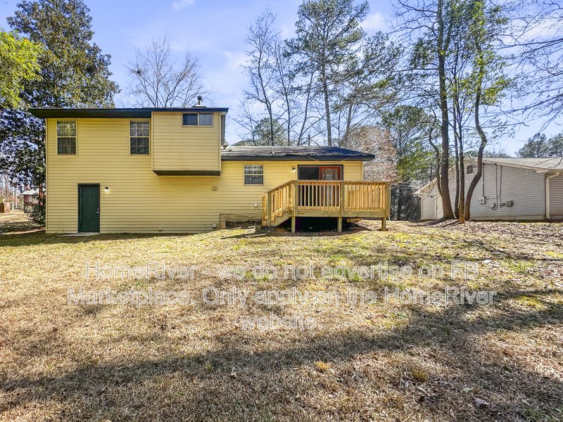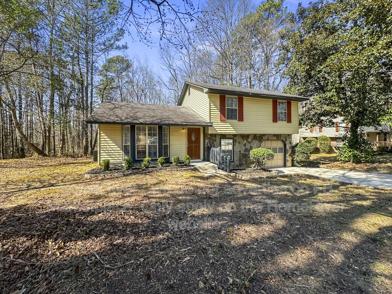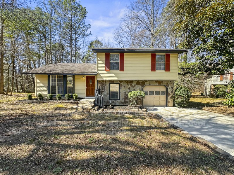 This well-maintained 3 bedroom, 2 bath home offering approximately 1,466 sq ft is situated on a wooded lot in a residential cul-de-sac setting. The exterior features a combination of siding and stone accents, a one-car garage, and a spacious driveway for additional parking. Inside, the home offers a bright and open main living area with durable wood-style flooring, neutral paint tones, and large windows that provide natural light. A ceiling fan enhances comfort in the primary living space. The layout connects seamlessly to the dining area and kitchen, creating a functional flow for everyday living. The kitchen includes rich wood cabinetry, solid surface countertops, tile backsplash, stainless steel appliances, and ample cabinet storage. Adjacent French doors lead to an elevated rear deck overlooking the backyard, offering additional outdoor living space. The home features three comfortably sized bedrooms with updated flooring and neutral finishes. Both bathrooms include updated vanities and fixtures, with a tub/shower combination in the full bath. The lower level provides additional flexible space that can be used for a variety of residential needs, along with access to the garage. The backyard offers mature trees and open space with room to enjoy the outdoors. Conveniently located near local shopping, dining, parks, and major commuter routes in DeKalb County.