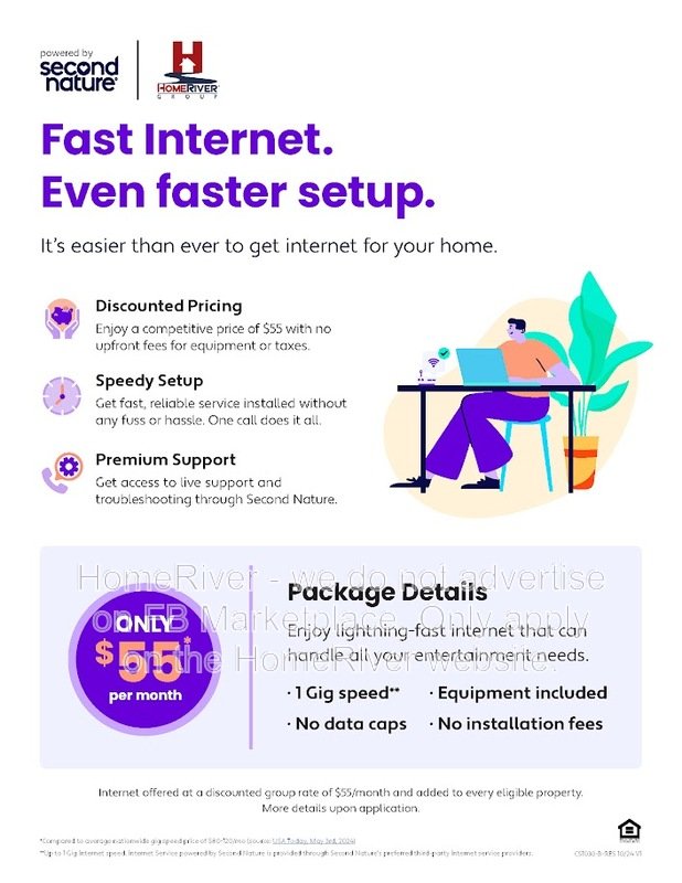 HomeRiver Group does not advertise properties on Craigslist, LetGo, or other classified ad websites. If you suspect one of our properties has been fraudulently listed on these platforms, please notify HomeRiver Group immediately. We never accept wire transfers or payments via Zelle, PayPal, or Cash App. Lease your home safely through www.Homeriver.com or with the assistance of a licensed HomeRiver Group leasing agent. All leasing information contained herein is deemed accurate but not guaranteed. Please note that changes may have occurred since the photographs were taken. Square footage is estimated.